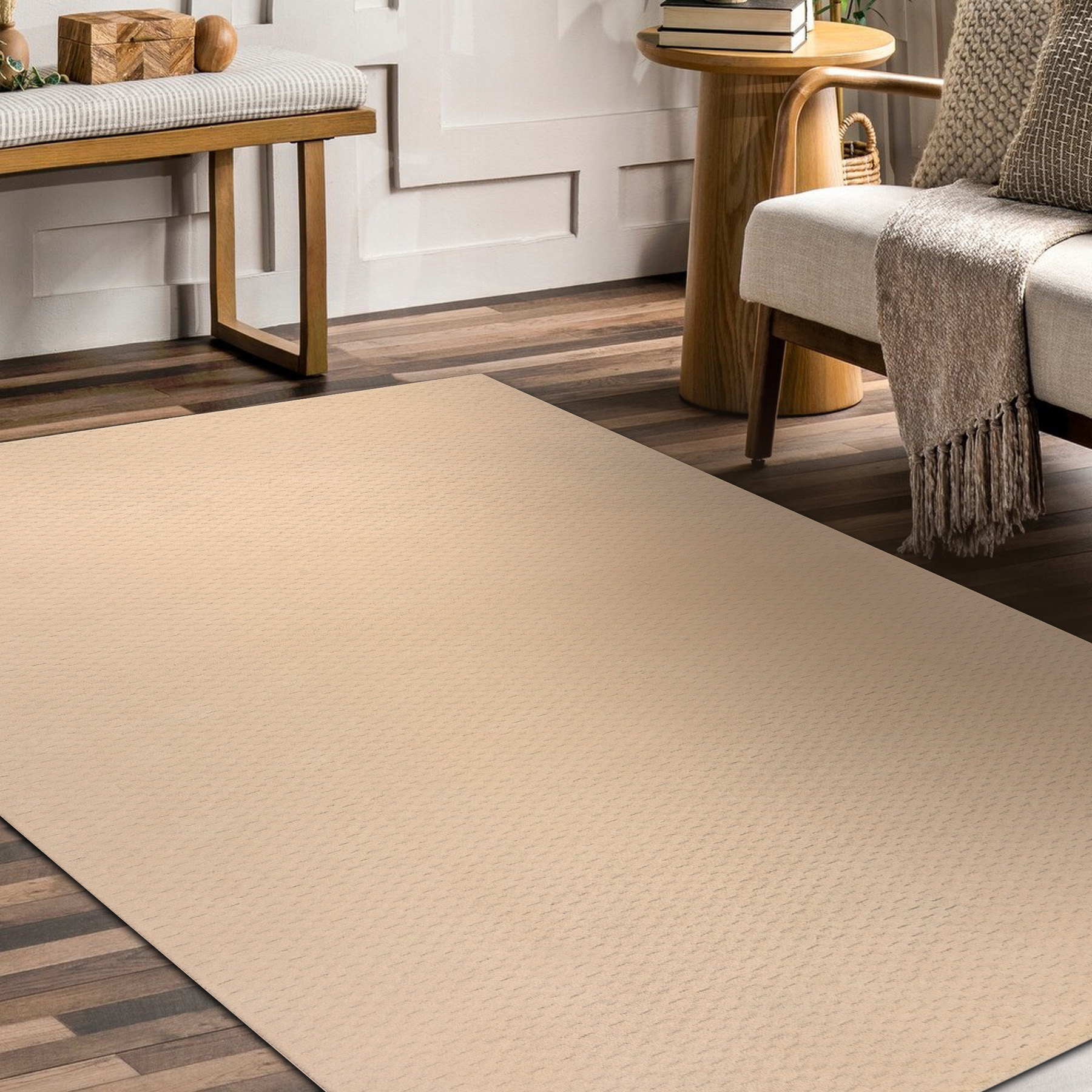 TEXTURA paklāji ir izgatavoti no 100% dabiskas vilnas – materiāla, kas tiek novērtēts par tā izturību, cēlumu un izcilajām ekspluatācijas īpašībām. To virsma izceļas ar skaidri definētu struktūru un daudzveidīgu plūksnu, radot dziļuma sajūtu un piešķirot interjeram mājīgu, taču greznu raksturu. Šie ir paklāji, kas ne tikai rotā, bet arī veido atmosfēru – mierīgu, siltu un dabisku. Kolekcijas klusā krāsu palete – balstīta uz smilškrāsām, krēmkrāsām, pelēkajām un zemes toņiem – ļauj paklājiem nevainojami iekļauties japandi, skandināvu, minimālisma, boho vai modernā interjerā. To daudzpusība padara tos piemērotus dažādām telpām – no viesistabām un guļamistabām līdz elegantiem mājas birojiem.
